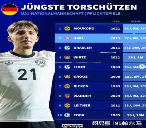 媒体喜欢趁热打铁式造星,以至于将卡尔形容为“例外级球星”,拜仁有顺水推舟的眼力,提拔到一线队只是其中一个节点。2024-25赛季的卡尔在拜仁青年队出尽了风头,累计为U17和U19梯队打进了34球,其中在U17中,身高1米68的卡尔俨然是火力全开的模式——18场比赛中贡献27粒进球和11个助攻。